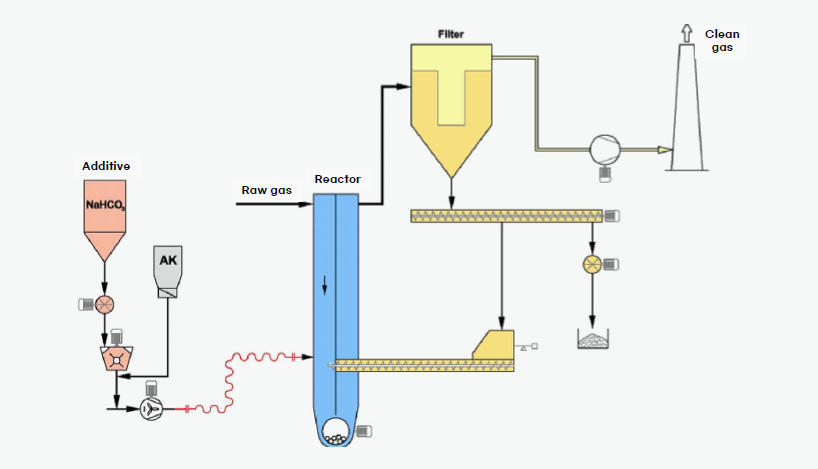 °í¿ÂÀÇ ¹è±â°¡½º¿Í Á¢ÃËÇÏ°Ô µË´Ï´Ù. ÀÌ °úÁ¤¿¡¼­ »ê¼º°¡½º (SOx, HCI & HF)´Â ºü¸¥ ¼Óµµ·Î ¾×Àû¿¡ Èí¼öµÇ°í, µ¿½Ã¿¡ ¼öºÐÀº Áõ¹ßÇÏ¸ç ¹ß»ýÇÑ ¹ÝÀÀ ºÎ»ê¹°Àº